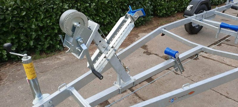 Der robuste Bootstrailer überzeugt durch eine stabile feuerverzinkte geschweißte Rahmenkonstruktion. Durch seine verschiebbaren sowie höhen- verstellbare beweglichen Vierfachrollen, höhenverstellbare Kielrollen und den verstellbaren Windenstand mit einer höhenverstellbaren Winde und Bugstütze kann er sehr leicht an fast jedes Motorboot bis zu einer Bootslänge von 5,80 m angepasst werden.